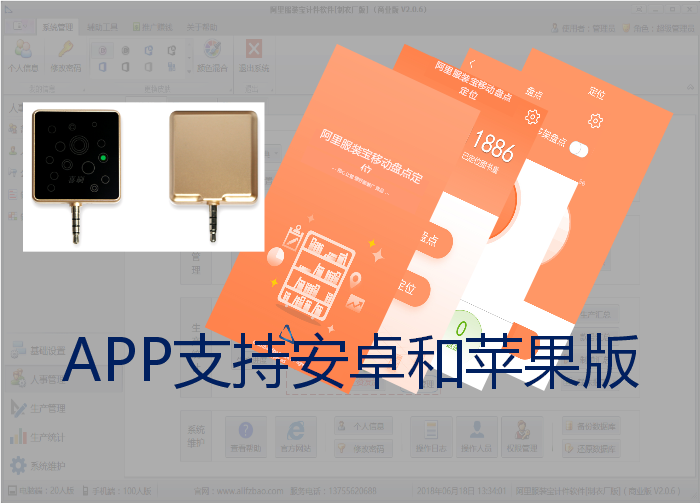 阿里服裝寶RFID盤(pán)點(diǎn)定位系統(tǒng)E1 是專為服裝廠定制的一款盤(pán)點(diǎn)和定位系統(tǒng)。系統(tǒng)包括PC端、移動(dòng)端APP(安卓和蘋(píng)果)和讀卡器。